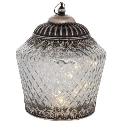 ΑΣΗΜΙ ΓΥΑΛΙΝΟ ΦΑΝΑΡΑΚΙ ΜΕ LED ΦΩΣ AND ΜΕΤΑΛΛΙΚΟ ΚΑΠΑΚΙ 15Χ15Χ19ΕΚ (ΑΑΑ 1.5V)