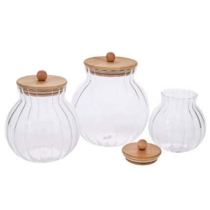 ΣΕΤ 3 ΓΥΑΛΙΝΑ ΔΟΧΕΙΑ ΜΕ ΑΕΡΟΣΤΕΓΕΣ ΞΥΛΙΝΟ ΚΑΠΑΚΙ Φ15Χ16,5 Φ12,5Χ14,5 Φ11Χ12ΕΚ