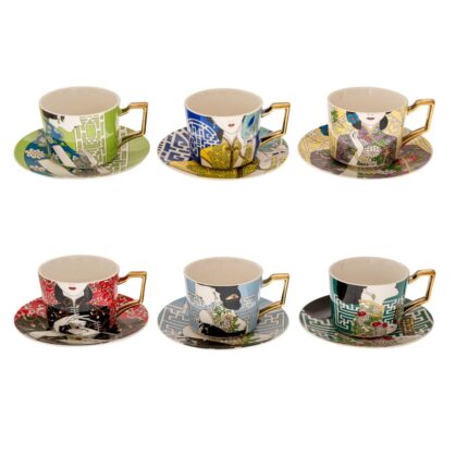 ΠΟΛΥΧΡΩΜΗ ΚΕΡΑΜΙΚΗ ΚΟΥΠΑ ΜΕ ΠΙΑΤΑΚΙ ΚΑΙ ΚΙΝΕΖΙΚΗ ΦΙΓΟΥΡΑ 6 ΣΧΕΔΙΑ 8.5Χ6.5ΕΚ 220ml.