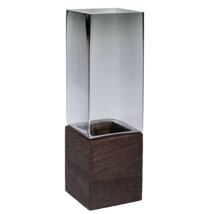 ΓΚΡΙ ΓΥΑΛΙΝΟ ΒΑΖΟ ΣΕ ΞΥΛΙΝΗ ΒΑΣΗ 10Χ30ΕΚ