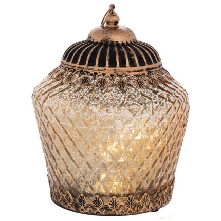ΧΡΥΣΟ ΓΥΑΛΙΝΟ ΦΑΝΑΡΑΚΙ ΜΕ LED ΦΩΣ AND ΜΕΤΑΛΛΙΚΟ ΚΑΠΑΚΙ 15Χ15Χ19ΕΚ (ΑΑΑ 1.5V)
