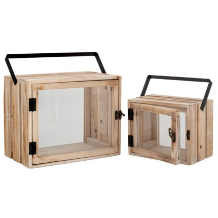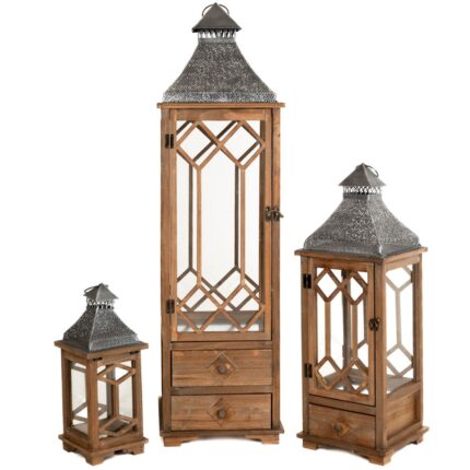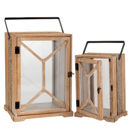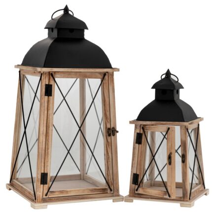 ΣΕΤ 2 ΦΑΝΑΡΙ ΞΥΛΙΝΟ ΟΡΘΟΓΩΝΙΟ ΜΕ ΜΑΥΡΟ ΧΕΡΟΥΛΙ 30Χ18Χ31 21Χ13,5Χ25ΕΚ