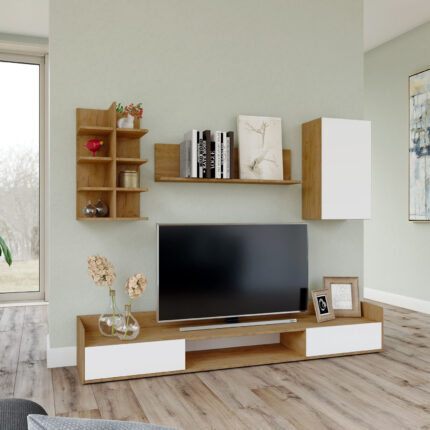 Σύνθεση τηλεόρασης Callisto Χρυσό Δρυς-Λευκό 200x40x180cm
