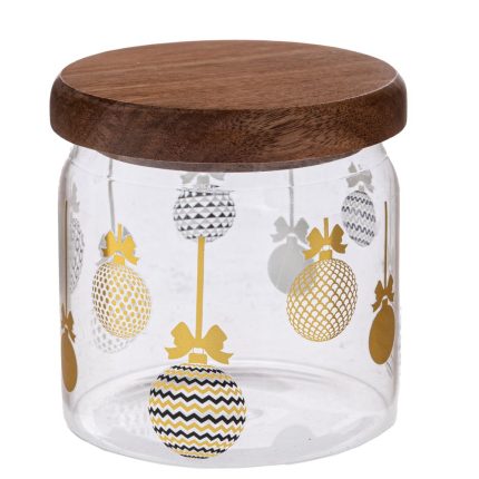 ΔΙΑΦΑΝΟ ΣΤΡΟΓΓΥΛΟ ΓΥΑΛΙΝΟ ΒΑΖΟ ΜΕ ΧΡΥΣΕΣ ΜΠΑΛΛΕΣ ΚΑΙ ΞΥΛΙΝΟ ΚΑΠΑΚΙ 10,5Χ10,5EK.
