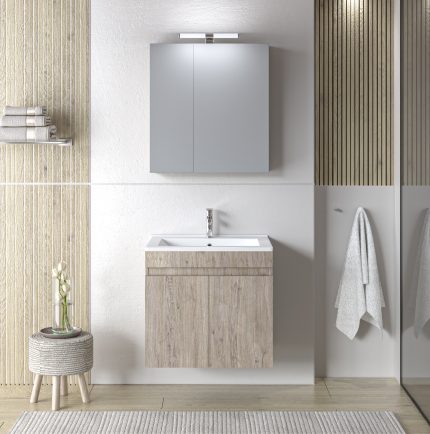 Καθρέπτης Μπάνιου LOTUS Με Ντουλάπι και Ράφια Λευκό-Σονόμα 79.6x20x64εκ