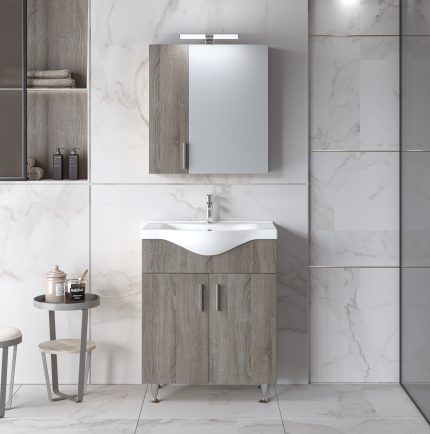 Καθρέπτης Μπάνιου LOTUS Με Ντουλάπι Γραφίτης-Σονόμα 79.6x20x64εκ
