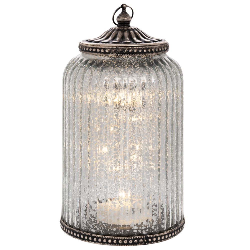 ΑΣΗΜΙ ΓΥΑΛΙΝΟ ΦΑΝΑΡΑΚΙ ΜΕ LED ΦΩΣ AND ΜΕΤΑΛΛΙΚΟ ΚΑΠΑΚΙ 11,5Χ11,5Χ20ΕΚ (ΑΑΑ 1.5V)