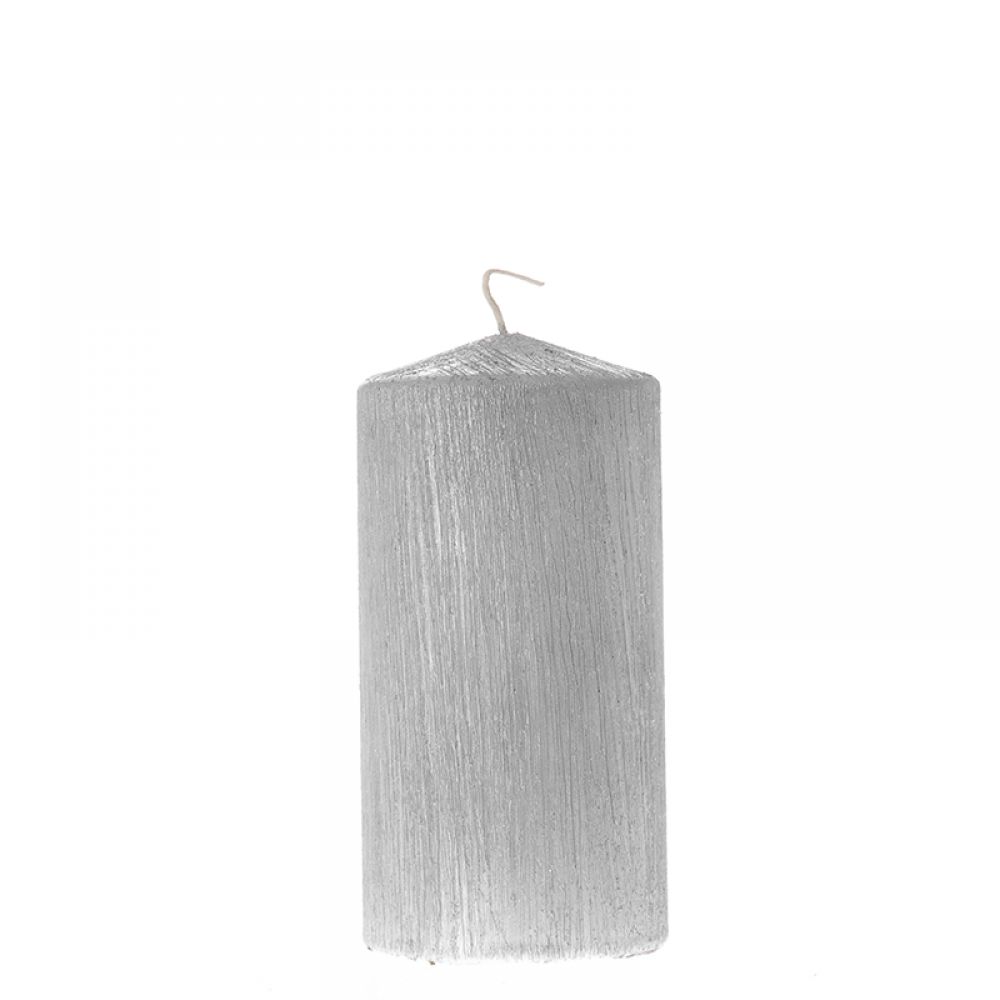 Ελληνικό ασημί κερί παραφίνης με τεχνοτροπία άγριας επιφάνειας και 50ώρες καύση.