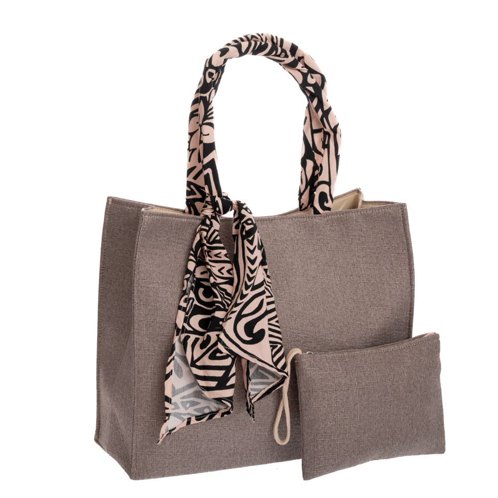 ΓΚΡΙ ΥΦΑΣΜΑΤΙΝΗ ΤΣΑΝΤΑ ΠΑΡΑΛΙΑΣ ΜΕ ΑΣΠΡΟΜΑΥΡΟ ΜΑΝΤΗΛΙ AND ΠΟΡΤΟΦΟΛΑΚΙ 40Χ15Χ33 23Χ16ΕΚ