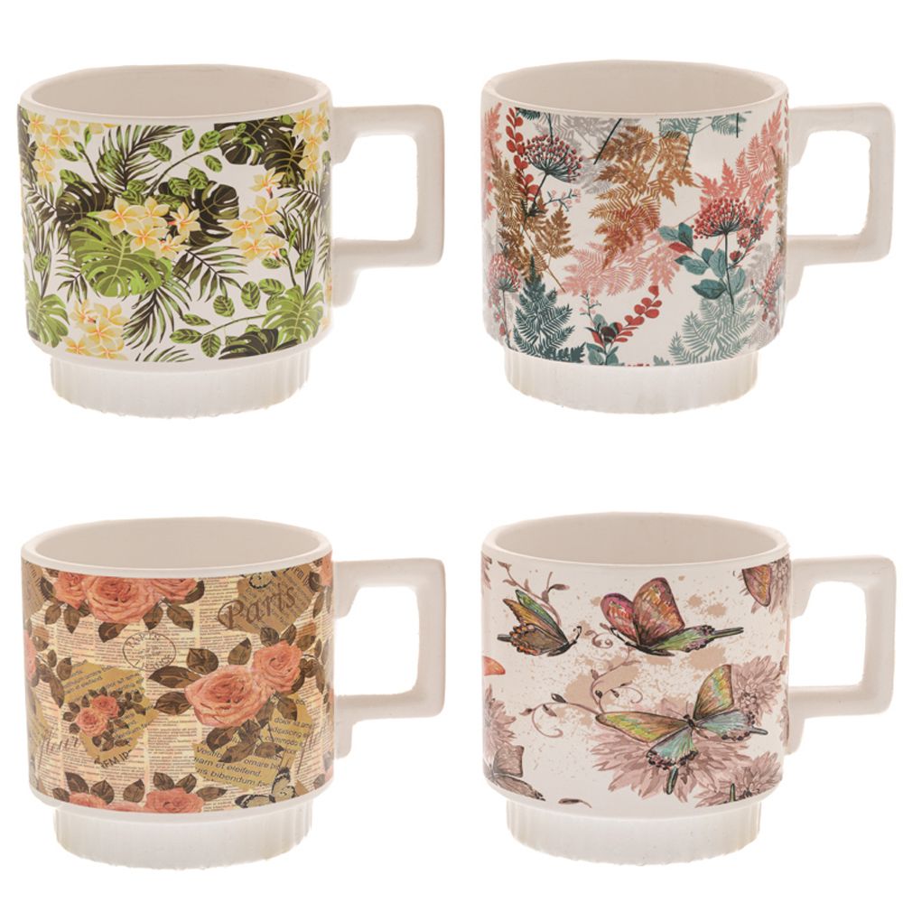 Κεραμικη κουπα κασπω για φυτεμα με χερακι σε 4 σχεδια και χρωματα.