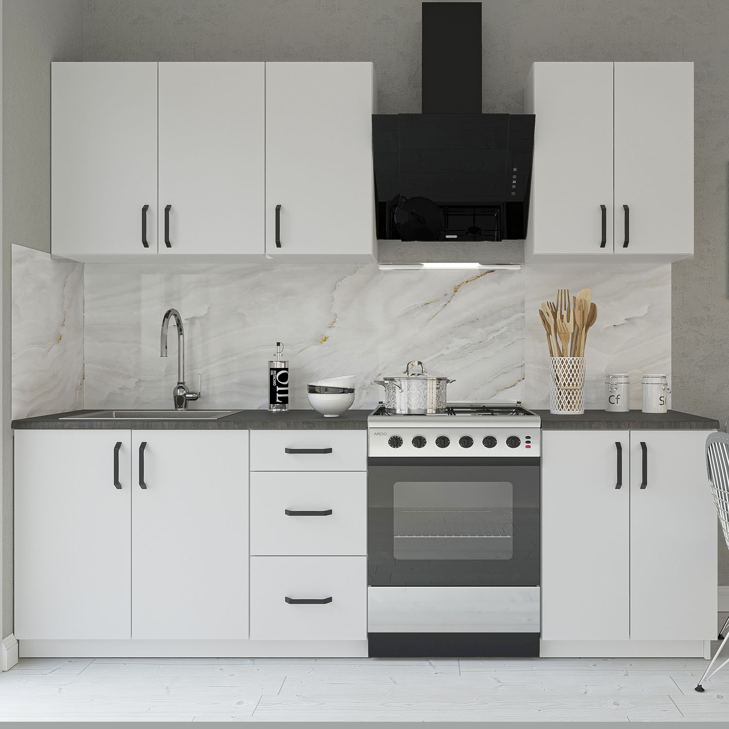 Κουζίνα Melisa Modest, Σετ Έξι Τεμαχίων, Ευρωπαϊκής Κατασκευής, εξαιρετικής ποιότητας και υψηλής αντοχής, σε λευκή απόχρωση.