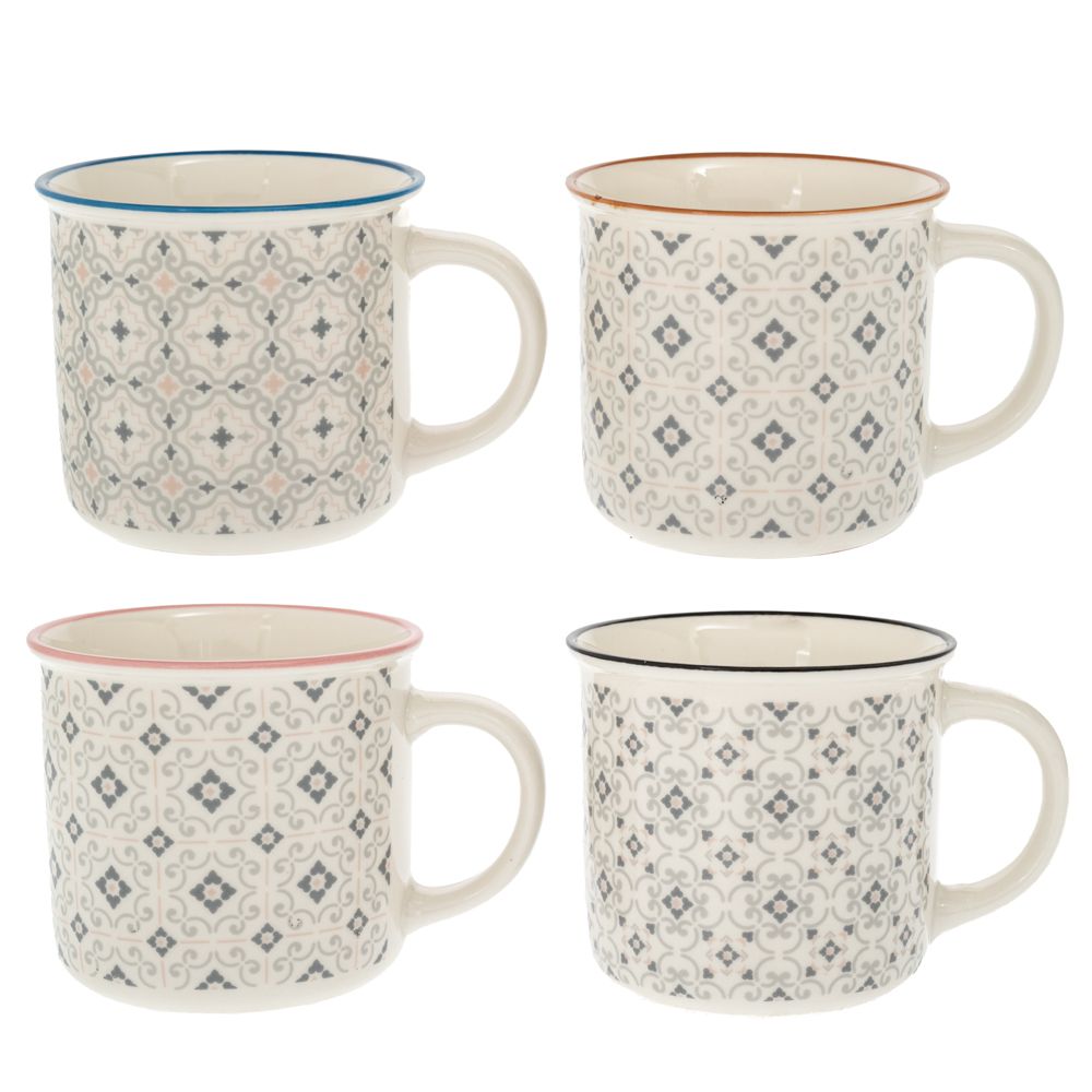 ΛΕΥΚΗ ΚΕΡΑΜΙΚΗ ΚΟΥΠΑ ΜΕ ΓΕΩΜΕΤΡΙΚΑ ΣΧΕΔΙΑ 400ML 4 ΣΧΕΔΙΑ