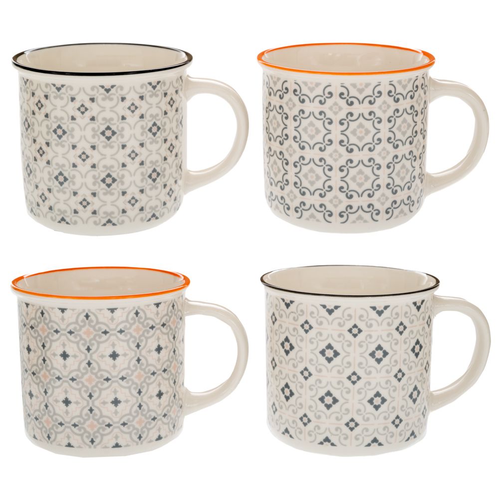 ΛΕΥΚΗ ΚΕΡΑΜΙΚΗ ΚΟΥΠΑ ΜΕ ΜΠΛΕ ΓΕΩΜΕΤΡΙΚΑ ΣΧΕΔΙΑ 4 ΣΧΕΔΙΑ 400ml