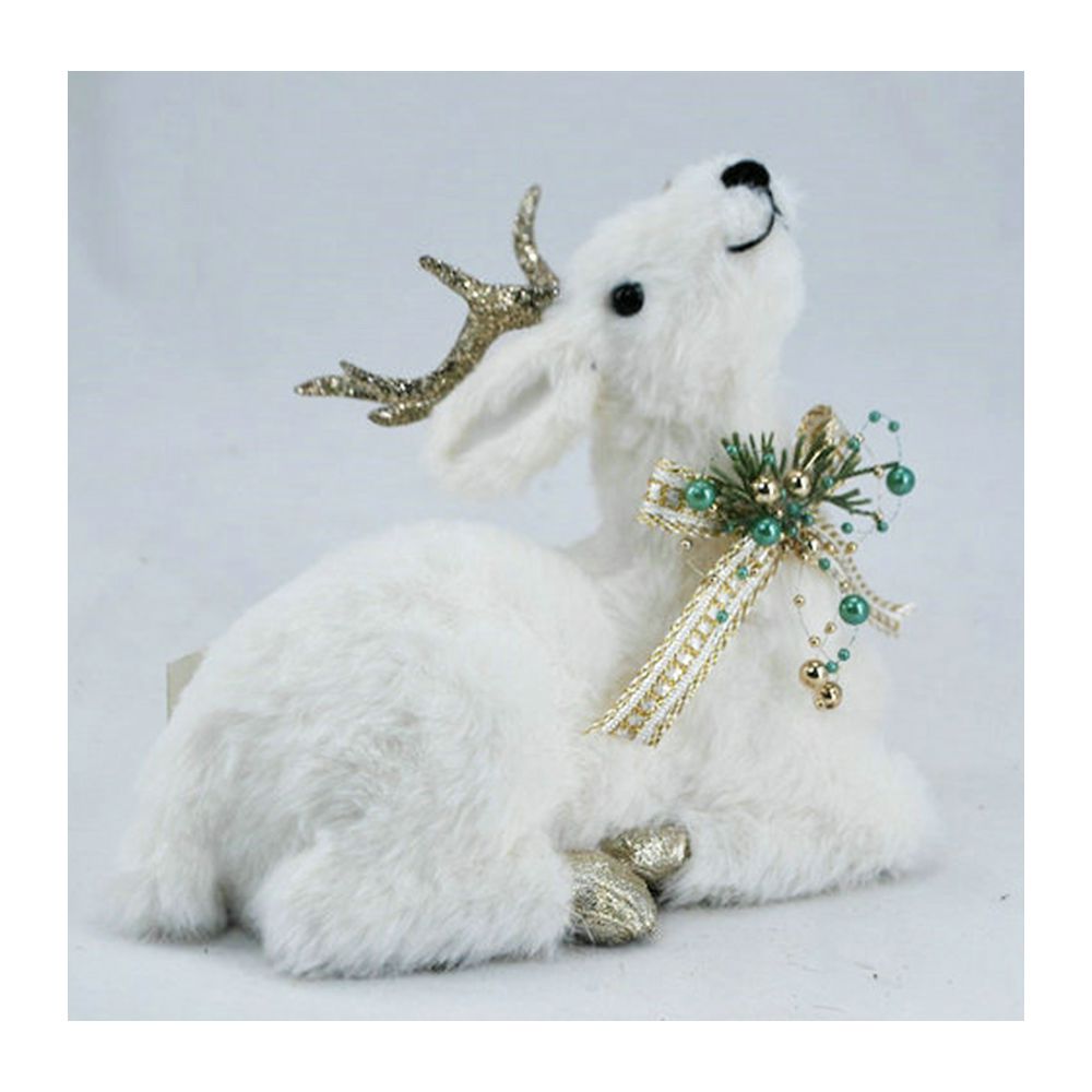 ΛΕΥΚΟ ΕΛΑΦΙ ΚΑΘΙΣΤΟ ΜΕ ΧΡΥΣΑ ΚΕΡΑΤΑ KAI ΧΡΥΣΟ ΠΙΚ ΣΤΟ ΛΑΙΜΟ 22X16,5X18,5ΕΚ