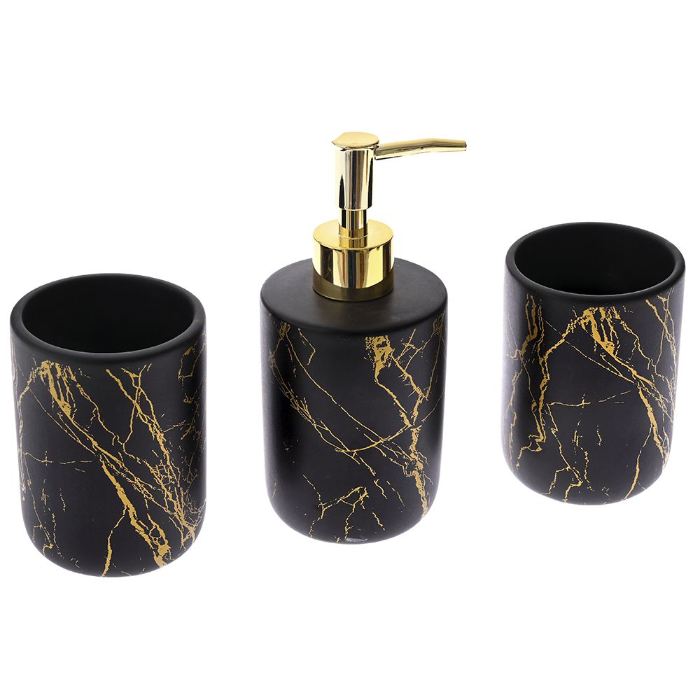 ΜΑΥΡΟ ΧΡΥΣΟ ΚΕΡΑΜΙΚΟ ΑΞΕΣΟΥΑΡ ΜΠΑΝΙΟΥ ΣΕΤ 3 ΤΕΜ