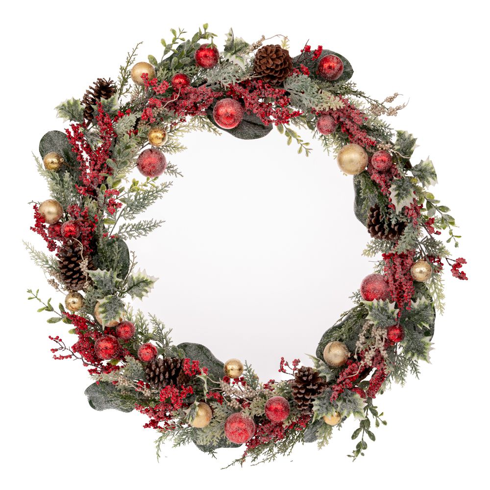 ΠΡΑΣΙΝΟ ΠΑΓΩΜΕΝΟ ΣΤΕΦΑΝΙ ΜΕ ΚΟΚ ΧΡΥΣ ΚΑΙ BERRIES 90ΕΚ