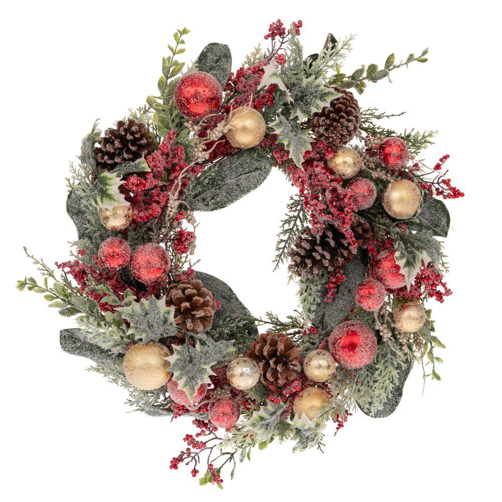 ΠΡΑΣΙΝΟ ΠΑΓΩΜΕΝΟ ΣΤΕΦΑΝΙ ΜΕ ΚΟΚ ΧΡΥΣ ΜΠΑΛΕΣ ΚΑΙ BERRIES Φ56ΕΚ