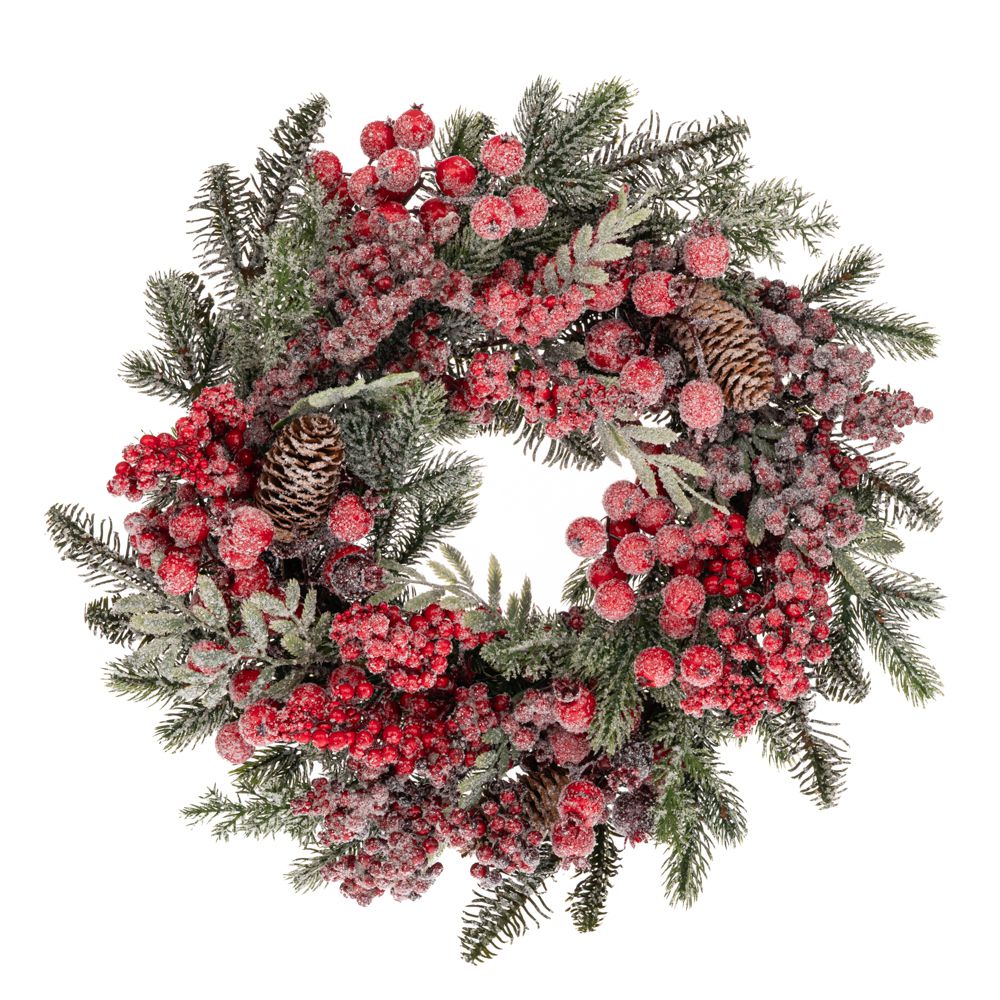 ΠΡΑΣΙΝΟ ΠΑΓΩΜΕΝΟ ΣΤΕΦΑΝΙ ΜΕ ΚΟΥΚΟΥΝΑΡΙ ΚΑΙ BERRIES Φ46ΕΚ