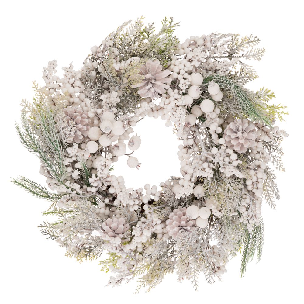 ΠΡΑΣΙΝΟ ΠΑΓΩΜΕΝΟ ΣΤΕΦΑΝΙ ΜΕ MIX ΛΕΥΚΩΝ BERRIES Φ46ΕΚ