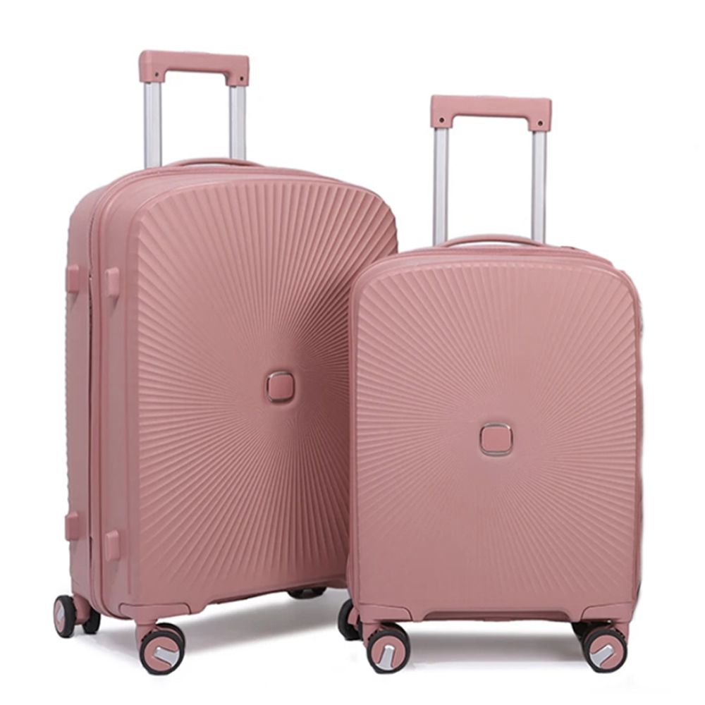 Σετ αποσκευών δύο τεμαχίων της εταιρίας Iliadis σε ροζ χρώμα. Είναι κατασκευασμένες από σκληρό πλαστικό, υλικό που τις καθιστά αδιάβροχες και ανθεκτικές στις φθορές.