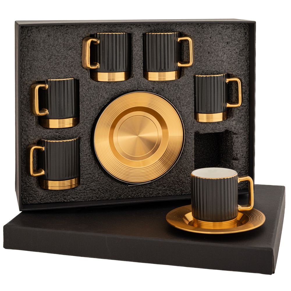 ΣΕΤ 6 ΜΑΥΡΟ ΦΛΥΤΖΑΝΙ ΜΕ ΠΙΑΤΑΚΙ ΚΕΡΑΜΙΚΟ+ΜΕΤΑΛΛΟ 5×6 11.5εκ πιατάκι