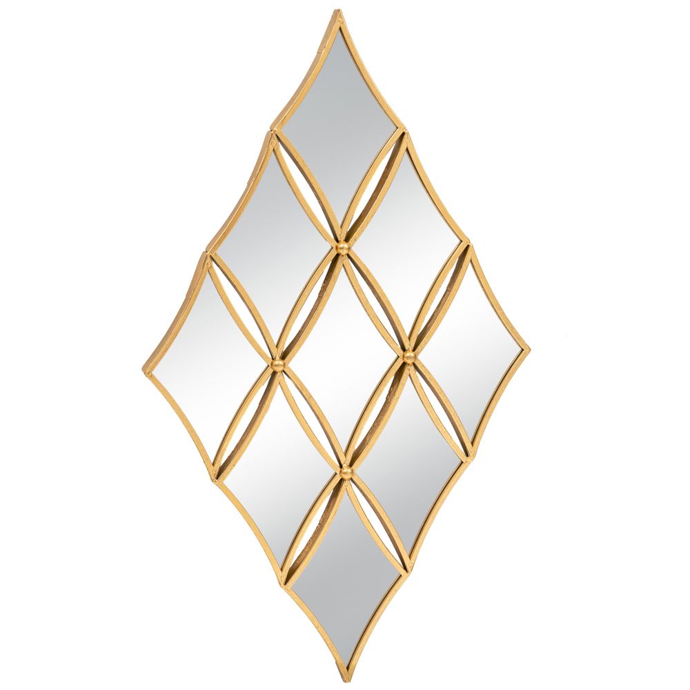 Καθρέφτης τοίχου με χρυσό μεταλλικό πλαίσιο και ρόμβους. Οι διαστάσεις του είναι 58×95εκ.