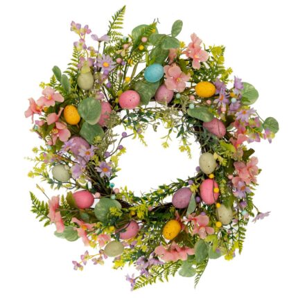ΣΤΕΦΑΝΙ ΜΕ ΡΟΖ ΛΟΥΛΟΥΔΙΑ ΚΑΙ ΧΡΩΜΑΤΙΣΤΑ ΑΥΓΑ Φ55ΕΚ Χ9ΕΚ